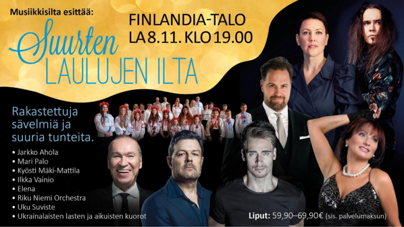 Suuri gaalakonsertti Ukrainan hyväksi Finlandia-talossa 8.11. klo 19.00–21.30